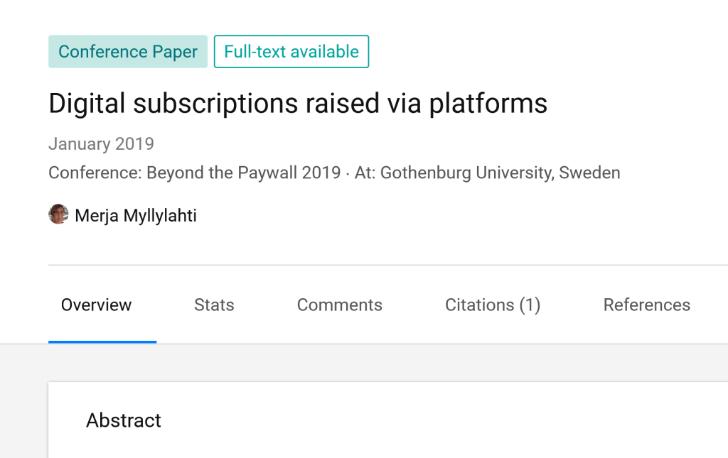 The paper about platform digital subscriptions was presented in Gothenburg University in Sweden on January 24, 2019. You can also read the conference presentation here.