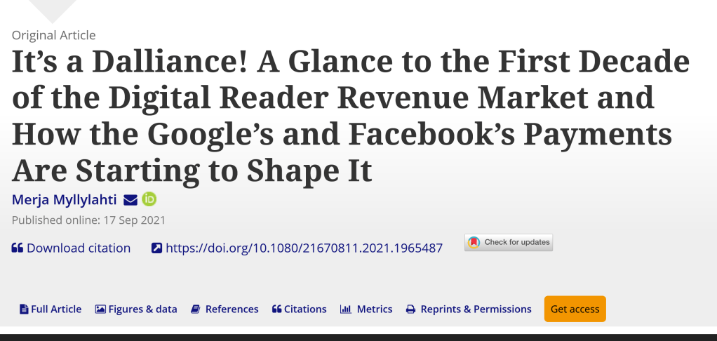 Who are the winners in the contemporary news industry? Where do the Google and Facebook payments for the news go and how they shape the news industry? In a new article for Digital Journalism, I argue that during the 2010-2020 news media industry became dominated by a handful of large news publishers, and the reader revenue market is mainly controlled by American, Australian, British, and Japanese news corporations. Additionally, I argue that Google’s and Facebook’s news payments are mainly targeted at large news publishers, and their money goes to the same large news companies. This strengthens further those news companies which are already the strongest. I also note that platforms payments for news companies are temporary in their nature and therefore the outcomes from the dalliance between news organisations and platforms is unpredictable.